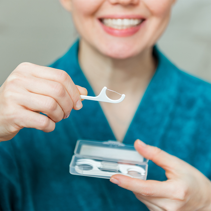 Enam pilihan wayar: nilon, PEFE, kapas, PE, UHMWPE, dan arang, sesuai untuk ruang gigi standard, celah pendakap dan gusi sensitif.